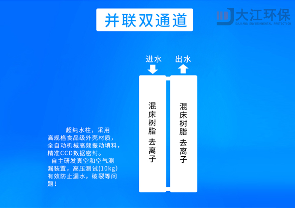3、超纯水混床树脂仅需4倍床层体积的冲洗便能使出水达到;